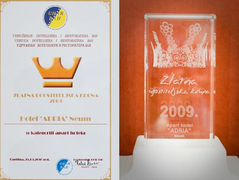 U hotelu Mogorjelo u Čapljini održana je tradicionalna, četvrta po redu ceremonija dodjele nagrada "Zlatna Ugostiteljska Kruna" za 2009. godinu najboljim objektima, udruženjima i institucijama u oblasti ugostiteljstva i turizma u Bosni i Hercegovini. Organizator ove svečane ceremonije bilo je Udruženje hotelijera i restoratera Bosne i Hercegovine, a održana je pod pokroviteljstvom Federalnog ministarstva okoliša i turizma. I ovogodišnjoj svečanosti nazočili su mnogi ugledni ugostiteljski i turistički djelatnici iz BiH i inozemstva.
